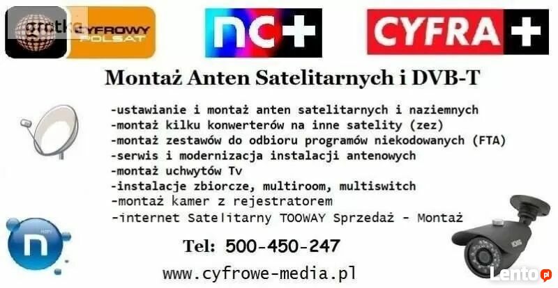 - Montaż i ustawianie Anten Satelitarnych i Naziemnych(Cyfrowy-Polsat , Telewizja N , Cyfra + , ORANGE, TP, NC+ , Telewizja Na Karte)